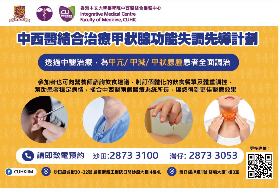| Integrative Medicine Treatment in Thyroid disease: A Pilot Service Program | Celebration for Professor CN Yang at 100 |